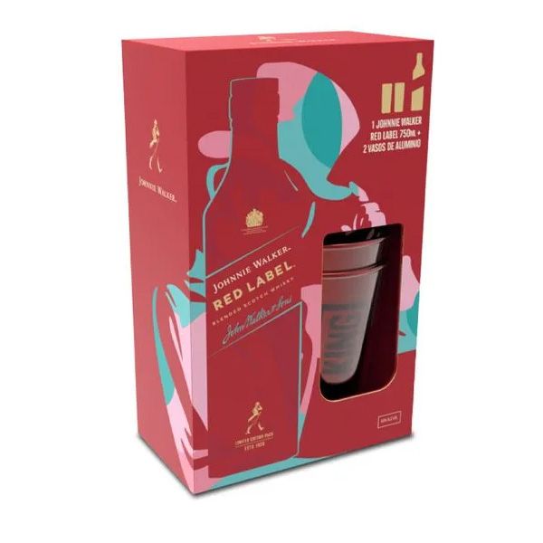 J.W. RED LABEL VAP 1L + 2 VASO ALUMINIO x 12